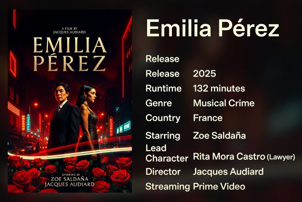題名: エミリア・ペレス 公開:2025年 上映時間:132分 ジャンル:ミュージカル・クライム 製作国:フランス